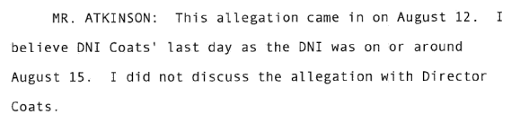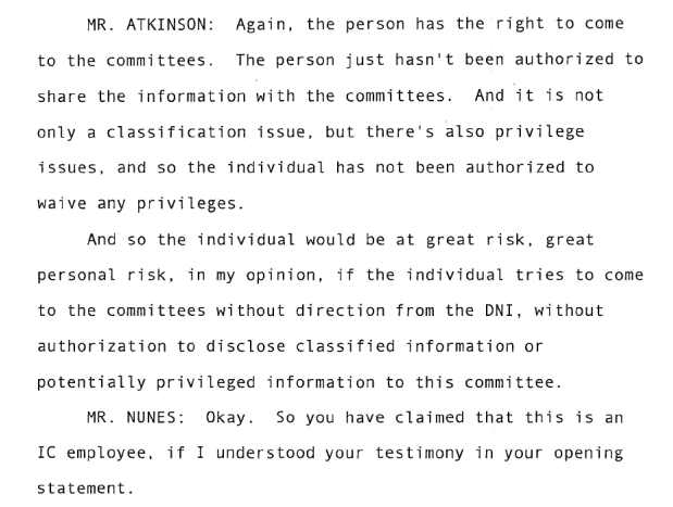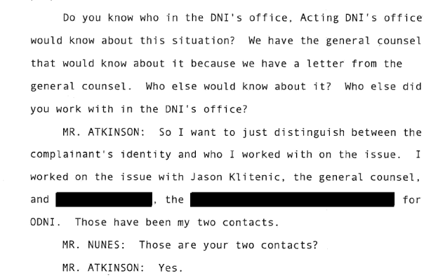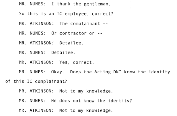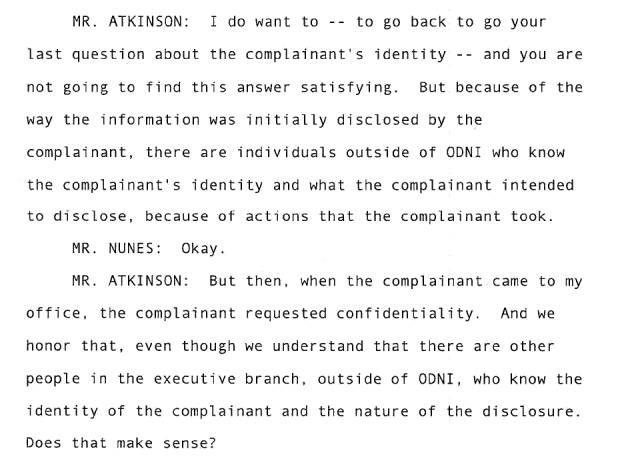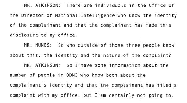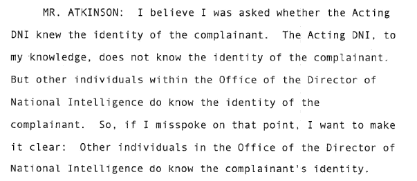 Atkinson clarifies later - Acting DNI does not know the identity of the complainant, but people in the ODNI do.