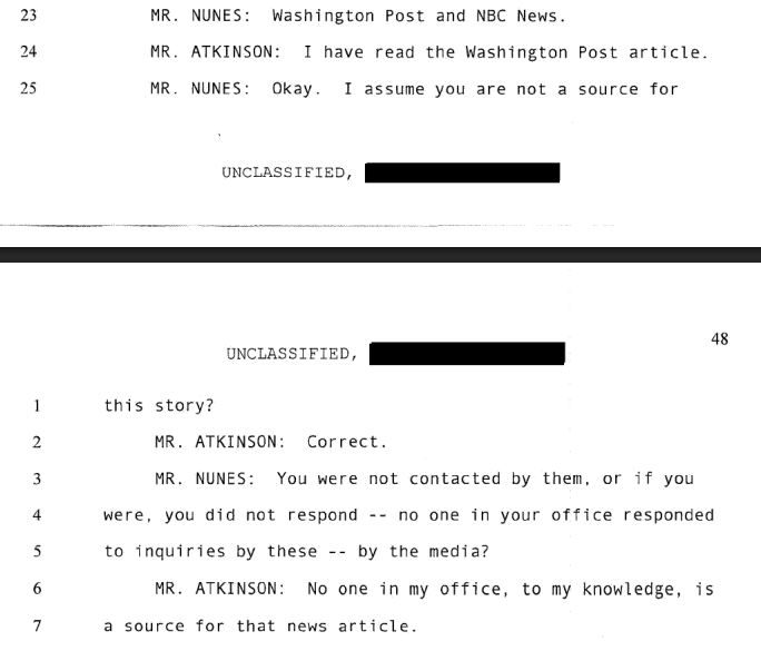 Michael Atkinson states nobody in his office was the source for either the NBC News or Washington Post articles at the time.