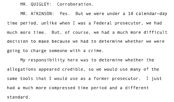 "I also just want to make one thing clear. As part of our 14-day preliminary review, we did not - our responsibility was not to corroborate every single point that was made or alleged."