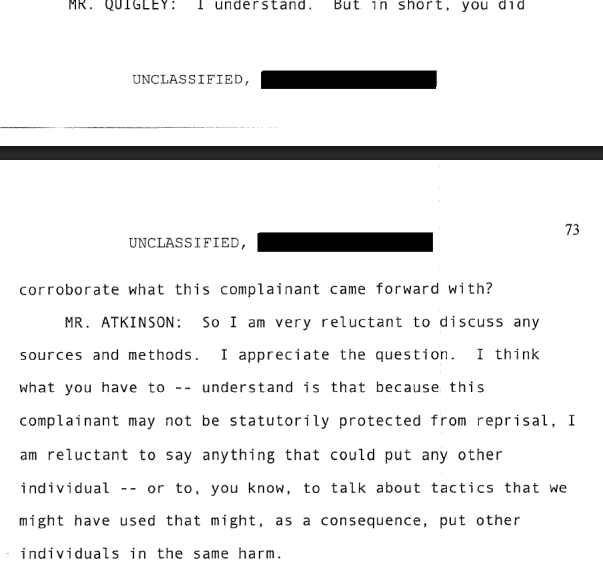 Ratcliffe takes a moment to point out that if an issue falls outside the jurisdiction of Michael Atkinson, then surely it must have been picked up by another IG.