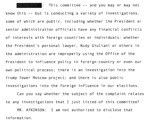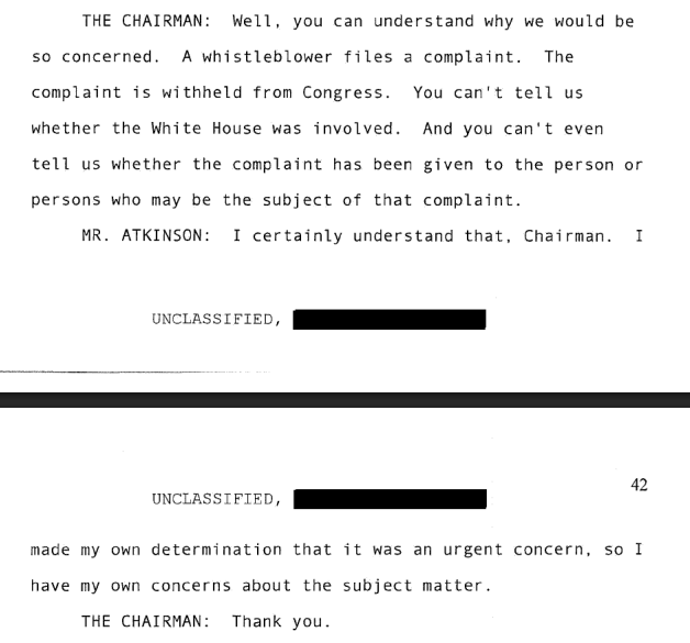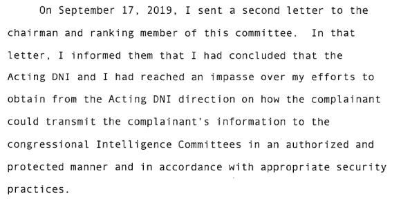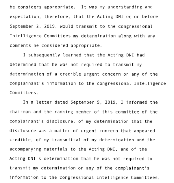 This is presumably the reason why Michael Atkinson said earlier that it is about public harm to the complainant. Apparently he knew the information since August 12, 2019.
