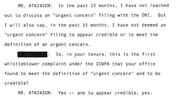 Michael Atkinson says this particular complaint was the very first that matched the credibility of "urgent concern".