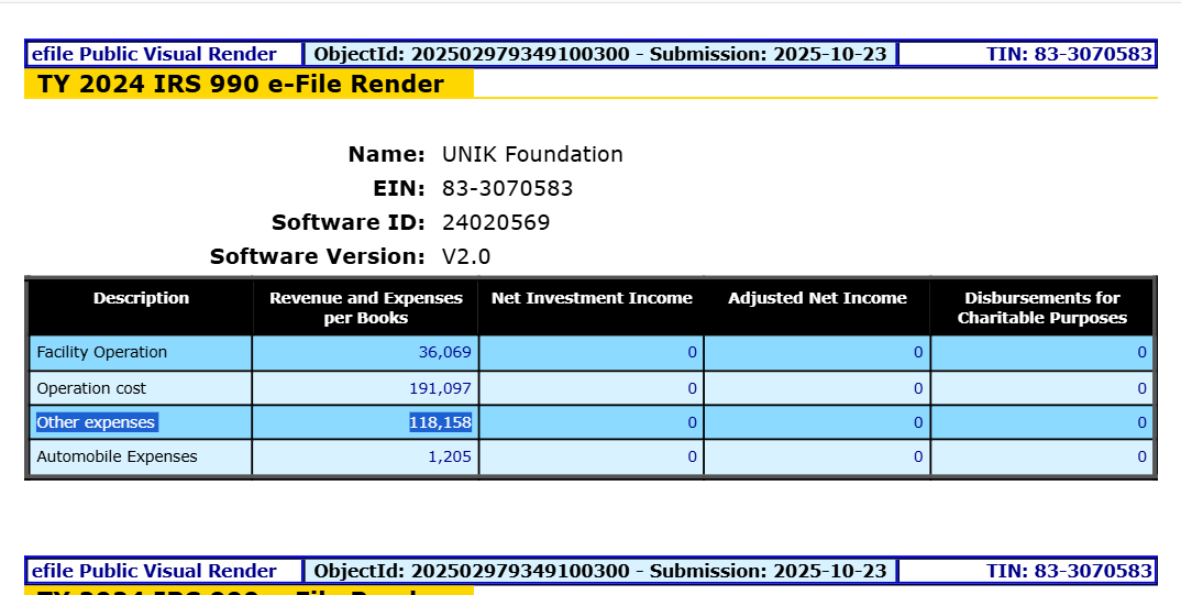 With this knowledge in mind, the UNIK Foundation's vague disclosures about "other expenses" look even MORE suspicious.