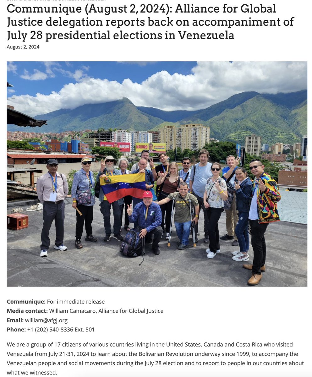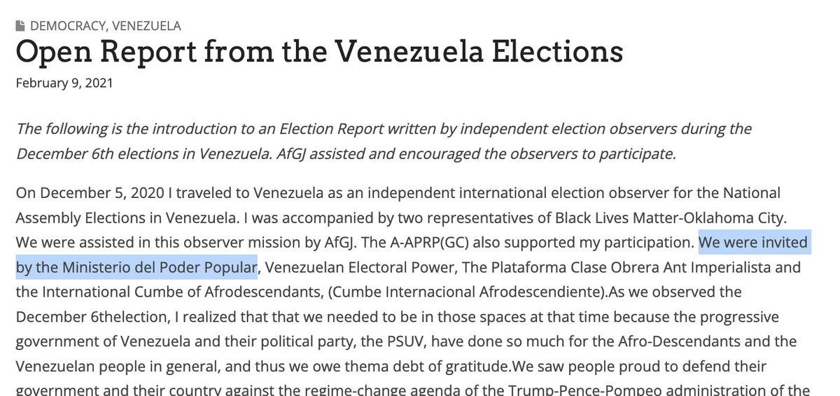 @lamps_apple This is unusual, because Maduro's regime cracked down on election observers. Only state pre-approved observers are allowed to attend. AfGJ was personally invited by the Venezuelan state. While they were there, they met with Alex Saab, Venezuela's Investment Head.