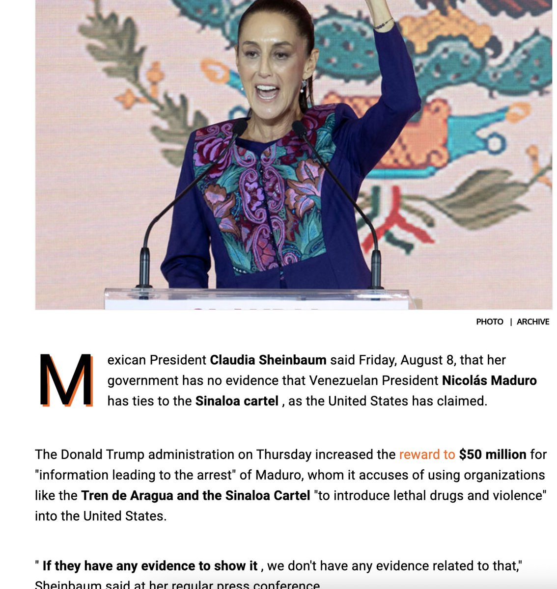 @lamps_apple Politicians join in the cover-up. Mexican President Claudia Sheinbaum also says that there's no evidence that Nicolas Maduro has ties to cartels. Her father was a Communist.