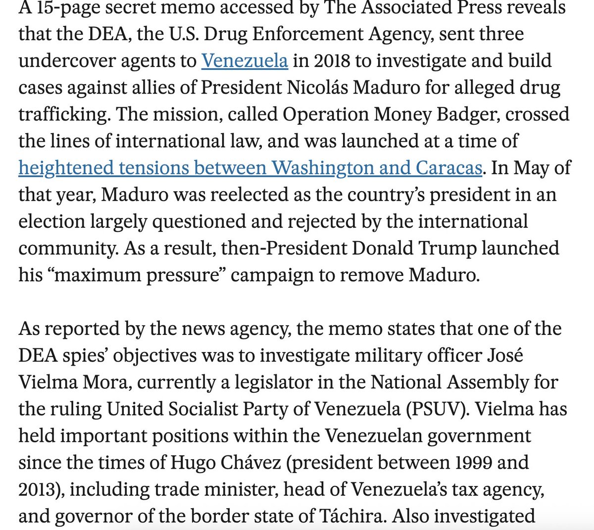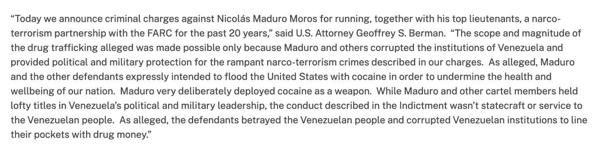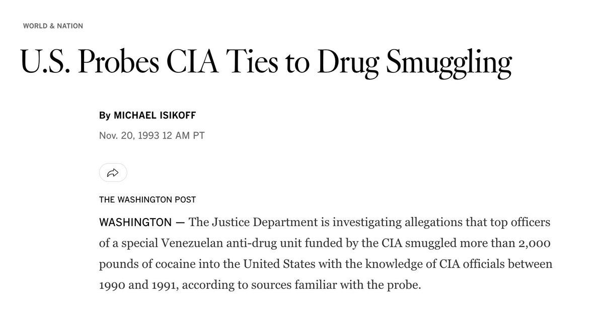 Before I wrap up the thread, I need to mention the role of the CIA in this. Two CIA officers in Venezuela were implicated in smuggling many tons of cocaine in the 1990s and was responsible for flooding America with drugs. However, Venezuela has shut itself off from DEA for two decades. President Trump was accused of violating international law when he sent undercover DEA agents there in 2018.