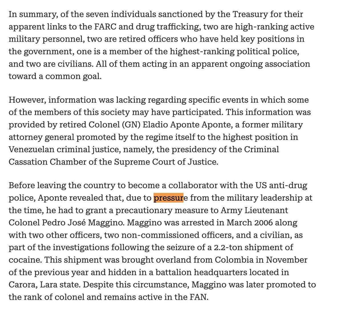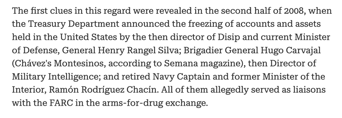 @lamps_apple The US Treasury Department has been sanctioning various Venezuelan generals. Former Venezuelan Supreme Court judge testified how he was pressurized by military to drop charges or release officers to drop charges for military members caught with drug shipments.