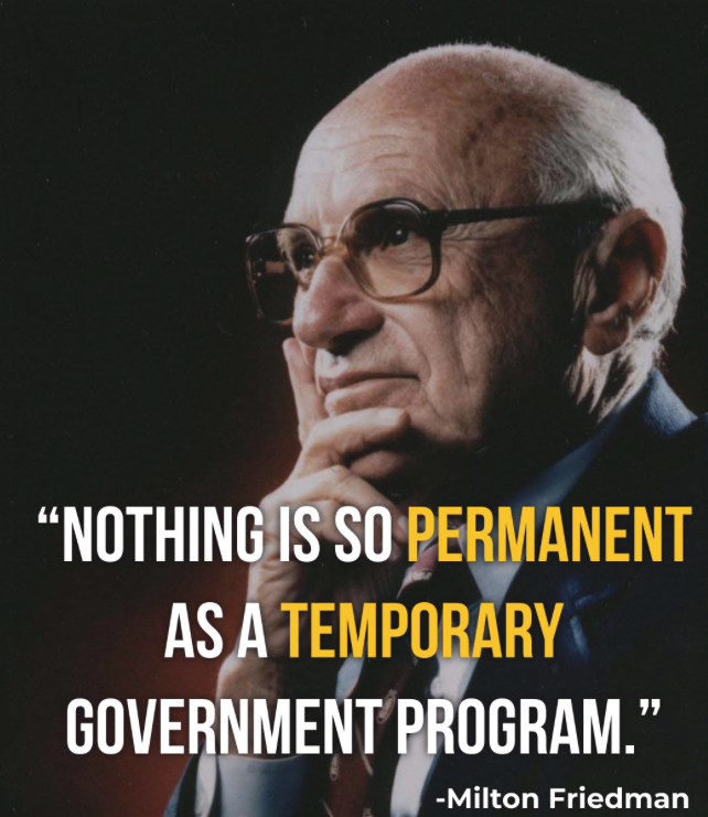 As Milton Friedman so often said, Nothing is so permanent as a temporary government program.