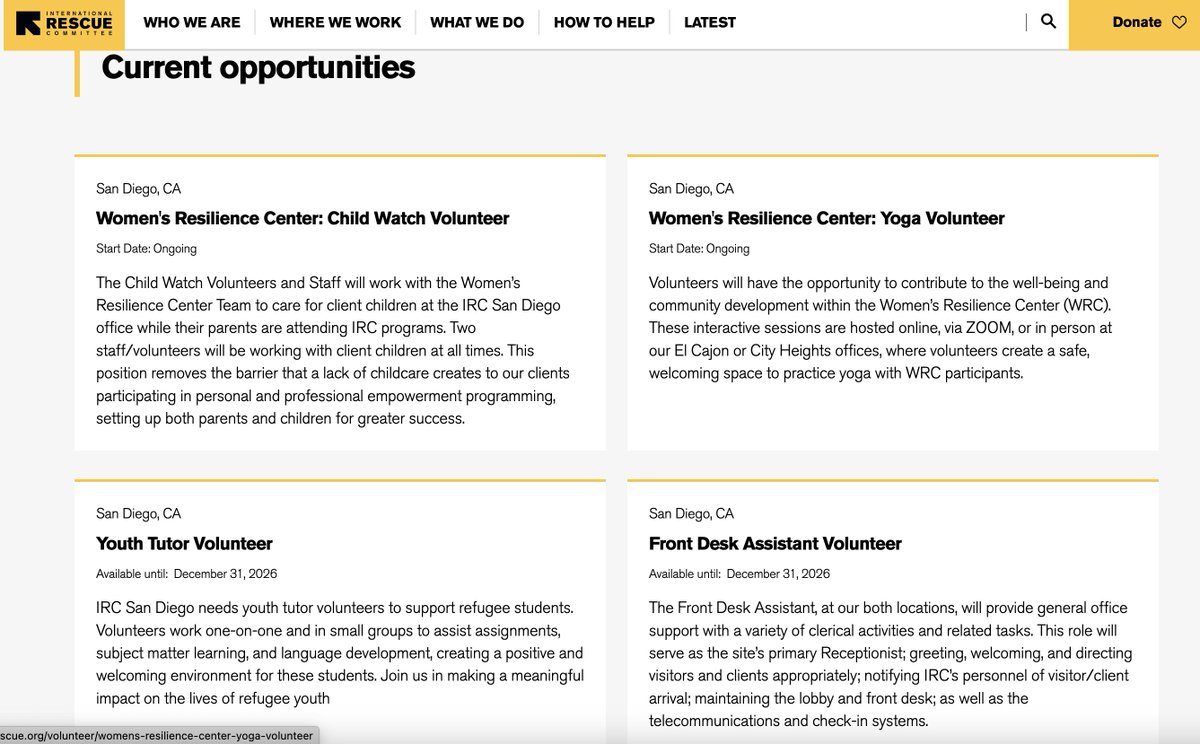 Women's Resilience Center (WRC): Located in El Cajon, this center offers a safe, culturally sensitive space with programs for emotional wellbeing, education, economic empowerment, and health. Activities include doctor dialogues, sewing and self-defense classes, English conversation sessions, drop-in yoga, and supportgroups.rescue.orgInterestingly enough, this woman Madiha Raza appears to be a significant contact for IRC and appears to be speaking here for The World Federation all of which is way above my pay-grade of understanding.