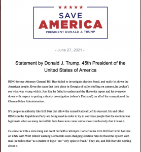 Trump Excoriates Barr, McConnell in Late-Night Missive: FORMER ATTORNEY GENERAL FORMERLY OPPOSED MAIL-IN VOTING BUT FAILED TO INVESTIGATE FRAUD CLAIMS!-Posted on The Post & Email-By Sharon Rondeau-On June 28, 2021: