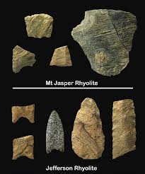 The various Jefferson sites are close to Mount Jasper, about which I’d previously written here, and the Jefferson stone closely resembles Mount Jasper rhyolite. Excavations conducted at the various Jefferson sites have been under the supervision of Dr. Richard Boisvert, the soon-to-retire New Hampshire state archaeologist I had a chance to interview in June of last year. Boisvert is especially interested in the paleo period and I am too, so I was thrilled when he agreed to meet with me. I’ve read everything I can find on Maine and New Hampshire sites, some of which he authored.