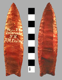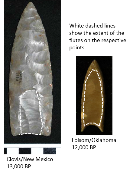 The Jefferson sites are forested now, but during the paleo period there were no trees and paleo hunters could have seen migrating herds miles away. They fashioned the distinctive, “fluted” spear points characteristic of the paleo period with which to kill them. Boisvert found other small bits of stone called “channel flakes” which are struck from those points to create the central groove or flute created for hafting. Boisvert said his team found 126 such channel flakes indicated extensive spearpoint manufacture.My wife and I visited Indian sites in the southwest just before I interviewed Boisvert. Artifacts are plainly visible on the surface there because there’s so little vegetation to obscure them. The first paleo artifacts were first discovered in Clovis New Mexico in 1929 and were dated to about the period of the Jefferson, New Hampshire artifacts. Clovis fluted points have since been found all over North America.